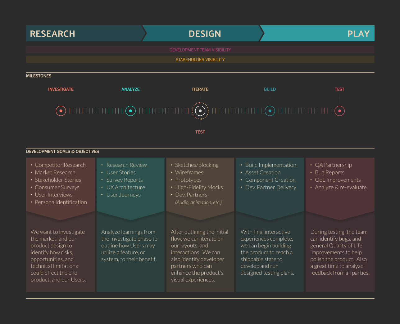In a perfect world, all project tasks can be run through the entire UX process of Research, Define, Ideate, Prototype, and Test, but that is often a rarity. Within the gaming industry, there are numerous teams that are co-developing multiple tasks and features concurrently, all with differing timelines. My process is agile enough to ensure designs can be delivered on time without sacrificing the pipeline framework any team uses. It’s designed to adapt to different project and individual task needs. New features benefit from the complete process, while existing features follow a streamlined approach. Team members are kept informed at every phase through consistent syncs and ongoing communication, which has become essential in remote work environments.